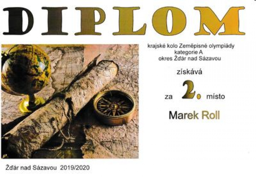 Blahopřejeme studentu Marku Rollovi k získání 2. místa v krajském kole Zeměpisné olympiády. Jeho úspěch je o to cennější, že soutěž jako jedna z mála proběhla na krajské úrovni online. Je vidět, že student primy se vyzná nejen v zeměpise, ale skvěle si vedl i ve využití informačních technologií. Poděkování za vzornou reprezentaci patří i Jiřímu Klubalovi (septima) a Martinu Staňkovi (tercie), kteří byli ve svých kategoriích úspěšnými řešiteli ZO.