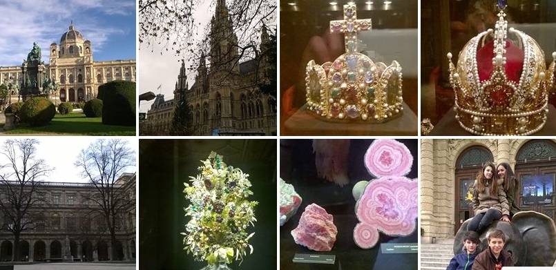 Odpoledne jsme vystoupili z autobusu v centru Vídně, abychom se mohli obdivovat takovým pamětihodnostem, jako je Dóm sv. Štěpána, na jehož Jižní věž mnozí vystoupili, Přírodovědné a Uměleckohistorické muzeum, Radnice, Parlament či areál Hofburgu. Tento císařský hrad sloužil jako zimní rezidence Habsburků, byl budován v různých architektonických stylech více než 700 let a stal se tak nejrozsáhlejším hradem v celé Evropě. O jeho prostornosti svědčí několik údajů – nachází se zde 18 traktů, 19 nádvoří a 2500 místností. Součástí Hofburgu je i vyhlášená „Španělská jezdecká škola“, dále Rakouská národní knihovna, Leopoldův trakt, kde úřaduje rakouský prezident, či Císařská klenotnice, do níž jsme zavítali a ze všech cenných kousků si nezapomněli prohlédnout rakouskou císařskou korunu a korunu Svaté říše římské.