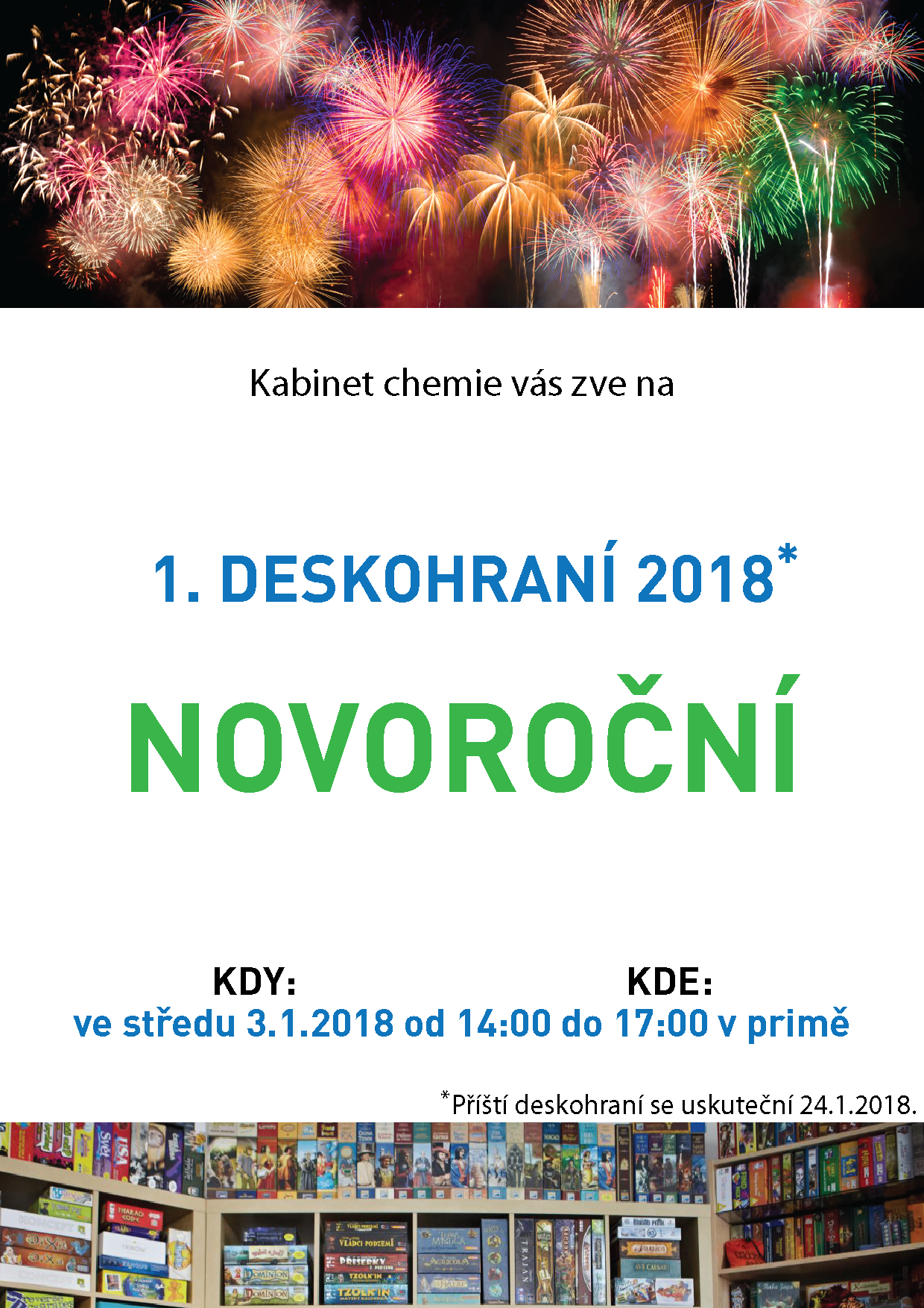 V novém roce se těšíme na další hrací akce, i když tentokrát už ne každý týden. Nejbližší termín jsme vybrali hned na první školní den nového roku 2018.