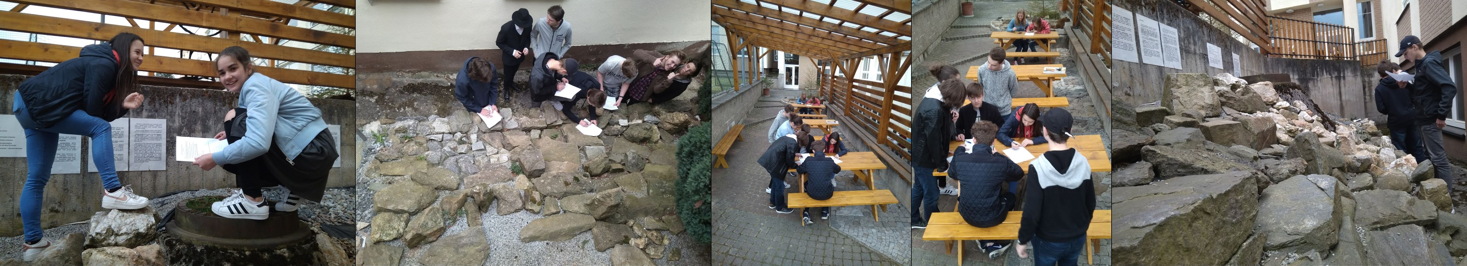 První horké dny letošního roku jsme s kvartou využili i k návštěvě geologické expozice ve školním dvoře. Studenti se díky ní seznámili s geologickým složením vybraných kopců z blízkého i vzdáleného okolí. Mimo jiné zjistili i to, které drahé kovy se těžily na Orlíku a na Křemešníku.