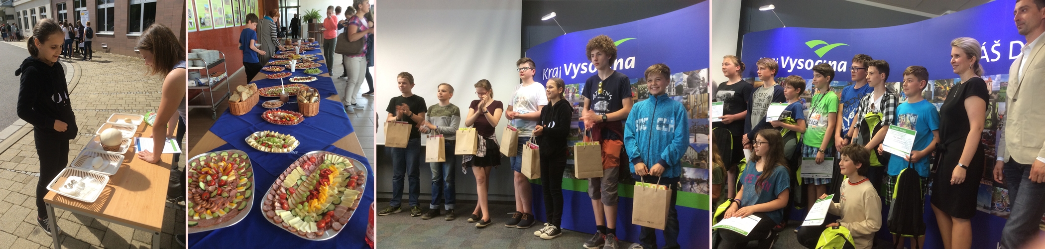 Hned při příchodu jsme byli potěšeni drobnými dárky na uvítanou. Poté proběhlo zahájení za účasti představitelů kraje, paní radní a partnerských škol. Po slavnostním zahájení přišla na řadu hlavní náplň soutěže. Písemný test byl složen z 25 otázek po jednom bodu. Nejvíce bodů v naší výpravě získala Natka Lomská s 16 body a probojovala se tak mezi dvacet nejlepších, kteří pojedou na začátku června na dvoudenní exkurzi po Vysočině.
