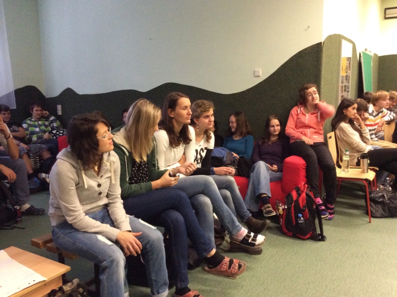 27. ledna jsme uspořádali školní kolo soutěže v komunikaci Young Demosthenes. Zařečnit si přišlo 15 žáků nižších tříd gymnázia a každý z nich si připravil monolog na téma dle vlastního výběru. Porota pak posuzovala originalitu tématu a jeho zvládnutí, výběr jazykových prostředků, zvukovou stránku jazyka, dynamiku, dramatičnost i celkový umělecký dojem. V kategorii nejmladších dětí (prima a sekunda) si nejlépe vedl Ondřej Festa (1.0), který se zabýval cestováním po Indii. Ze studentů tercie a kvarty se nejvíce líbila Barborka Příhodová (3.0), jež se zamýšlela nad pocity člověka v jednotlivých životních etapách. Vítězové obou kategorií postupují do regionálního kola a s nimi ještě Denisa Horáková (5.0), která ve své kategorii studentů středních škol neměla žádného konkurenta.