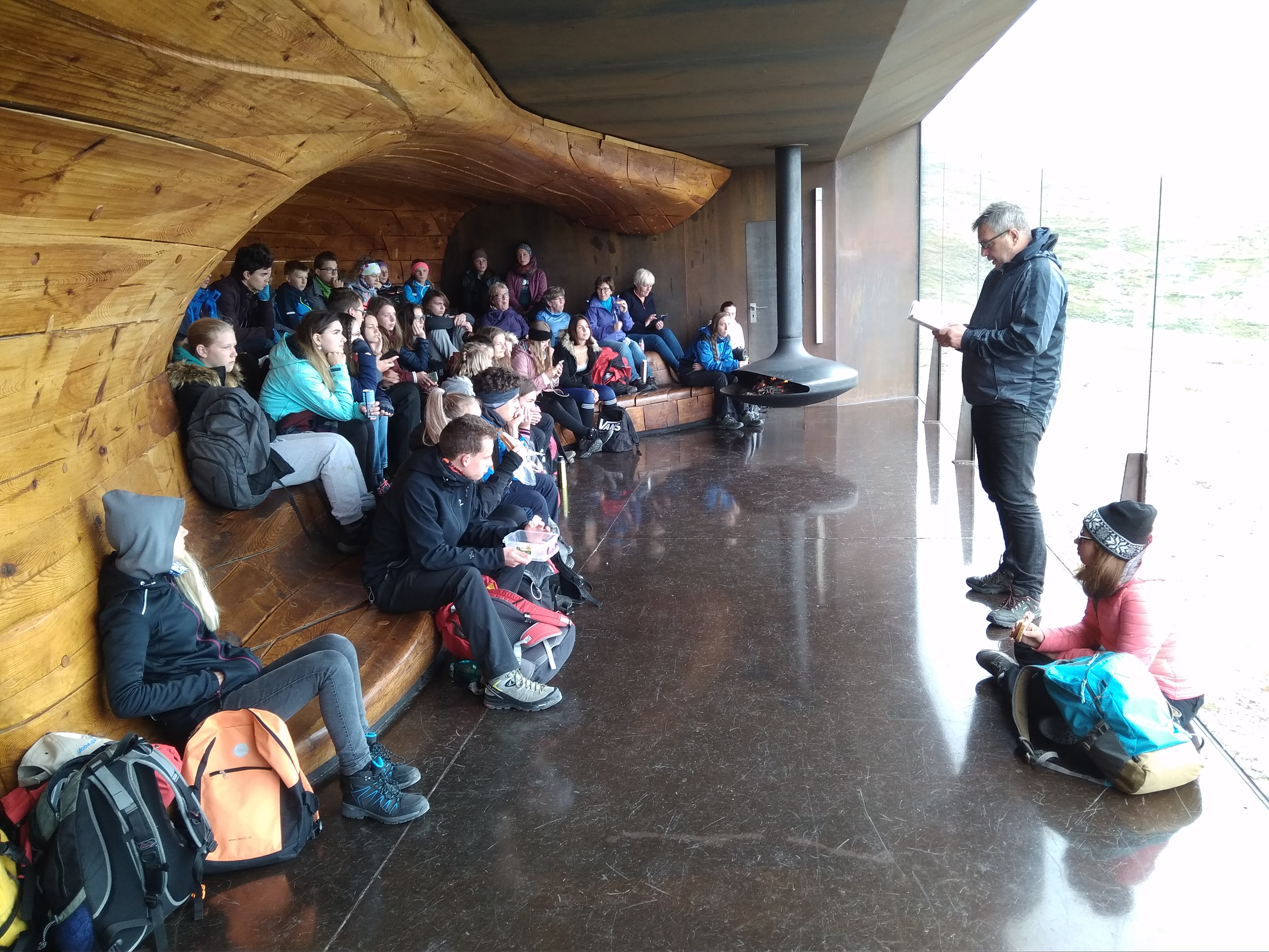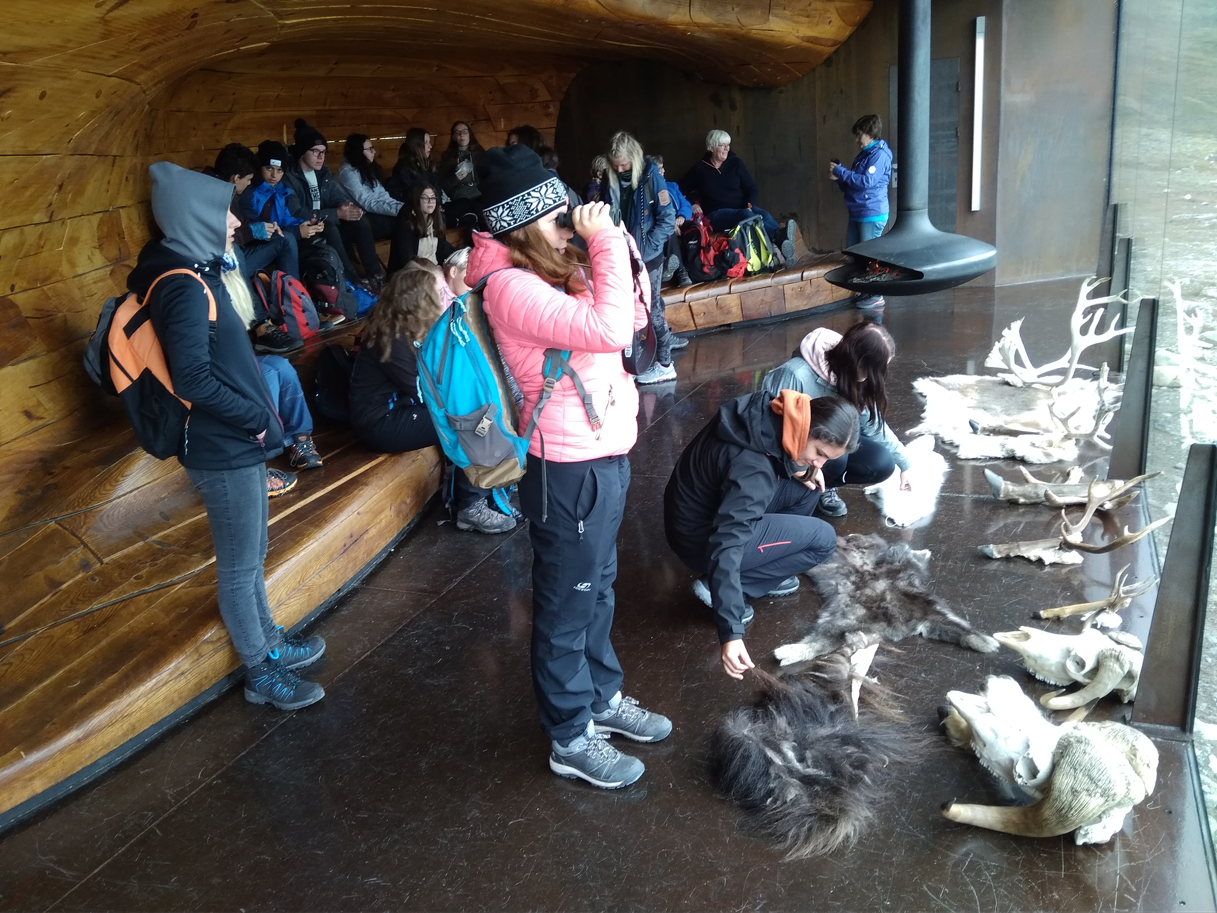 čtvrtek, 05 září 2019 | Napsal(a) RNDr. Jiří Svoboda, Ph.D. | Rubrika ExkurzeVe středu se nám počasí pokazilo, a tak pro nás průvodce vybral relativně nenáročný výlet do národního parku Dovrefjell- Sunndalsfjella. Od autobusu jsme lehce vystoupali k vyhlídce, kde je pro návštěvníky zřízena originální a prostorná pozorovatelna. Nejprve jsme si vyslechli jednu z norských pověstí, a pak už jsme pozorovali dalekohledem pižmoně, jimiž je tento park proslulý. Pracovnice parku navíc rozložila na zem kožešiny, rohy a paroží, abychom si rozšířili naše představy o oživení parku. Odvážnější se poté v mírném dešti vydali prozkoumat tundru okolních svahů.